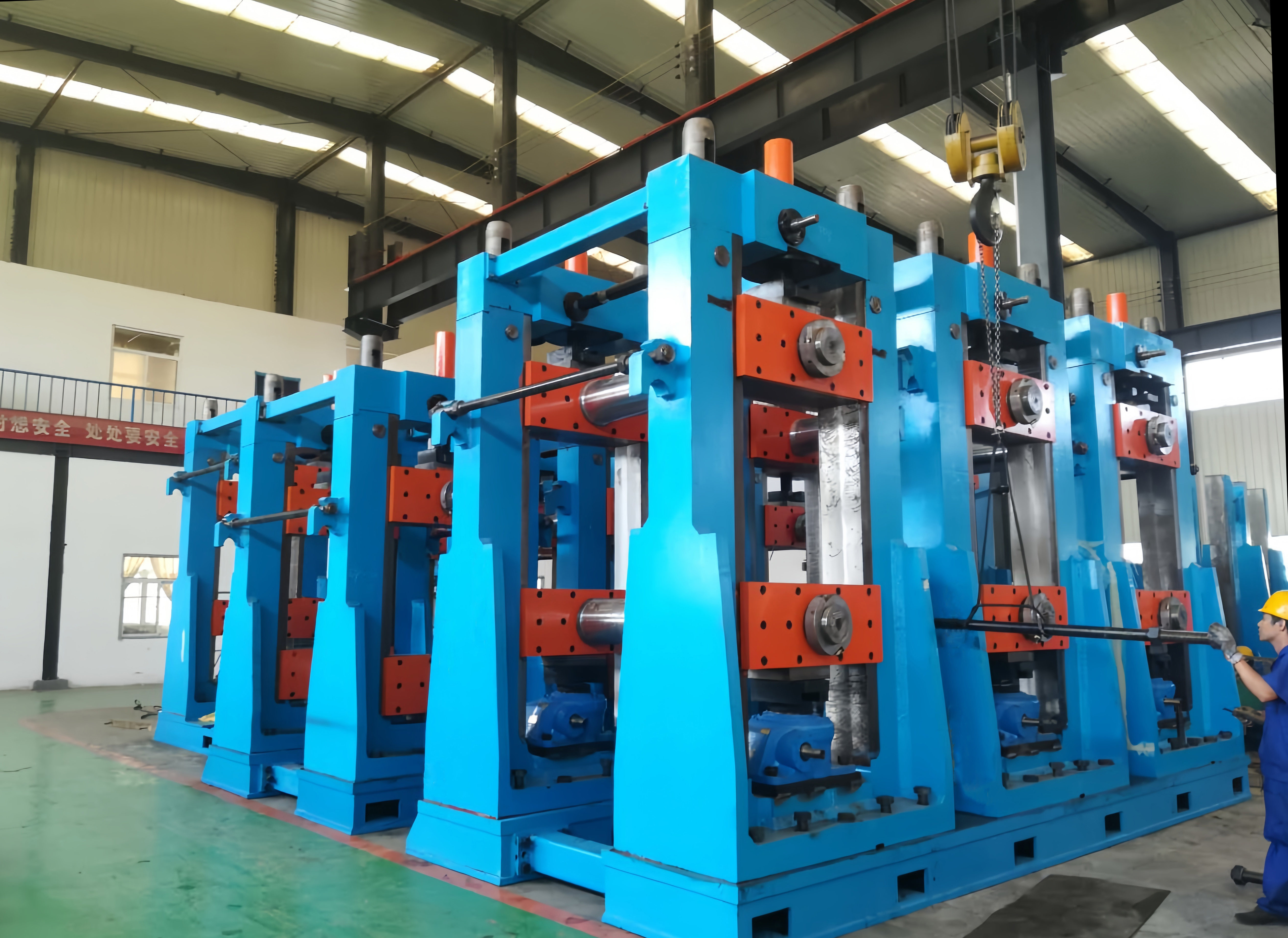 軋輥和輥墊 開卷機和矯平機 剪切和對焊機 活套 固態(tài)高頻焊機 飛鋸 精矯直機 水壓測試機 自動碼垛機 縱剪生產(chǎn)線 高頻直縫焊管設備